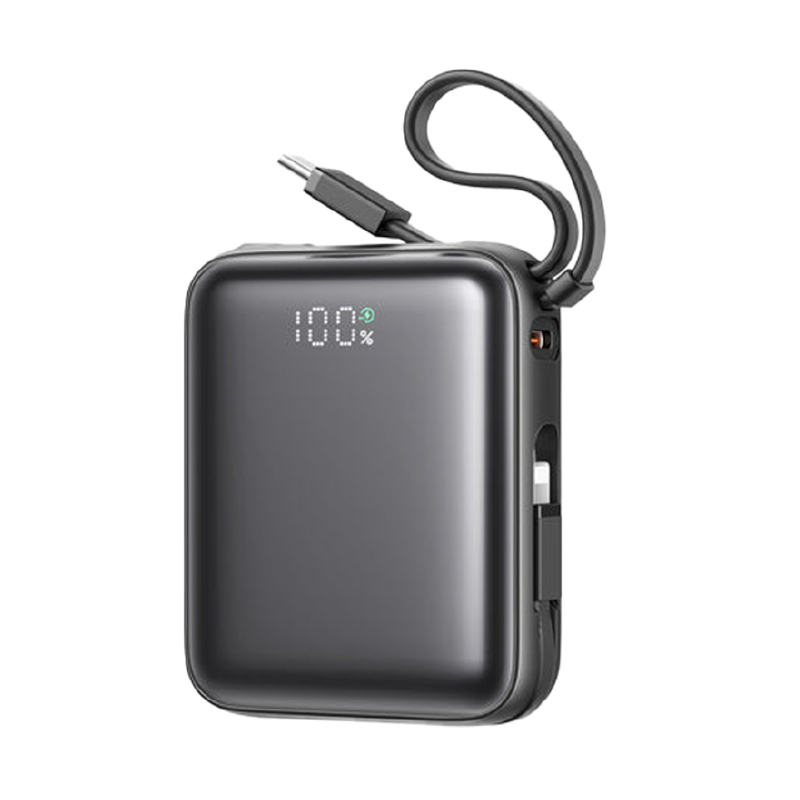 باور بنك صغير 22.5 واط بسلكين مدمجين (Lightning وType-C) طراز JR-PBF27 بسعة 10000 مللي أمبير من جوي روم