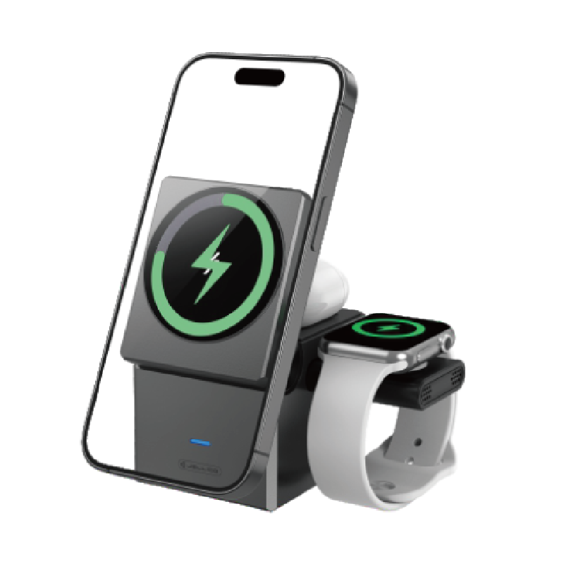 المنفذ: تايب-Cخرج الهاتف المحمول: 5واط/7.5واط/10واط/15واط(بحد أقصى)خرج سماعات الأذن: 3واطخرج الساعة: 2.5واطالمدخل: 5فولت/3أمبير,9فولت/3أمبير,12فولت3أمبير,QC3.0,PDمتوافق مع الهواتف المحمولة: 4.7-6.9 بوصةحجم الطي: 68.5*60*66 ملم