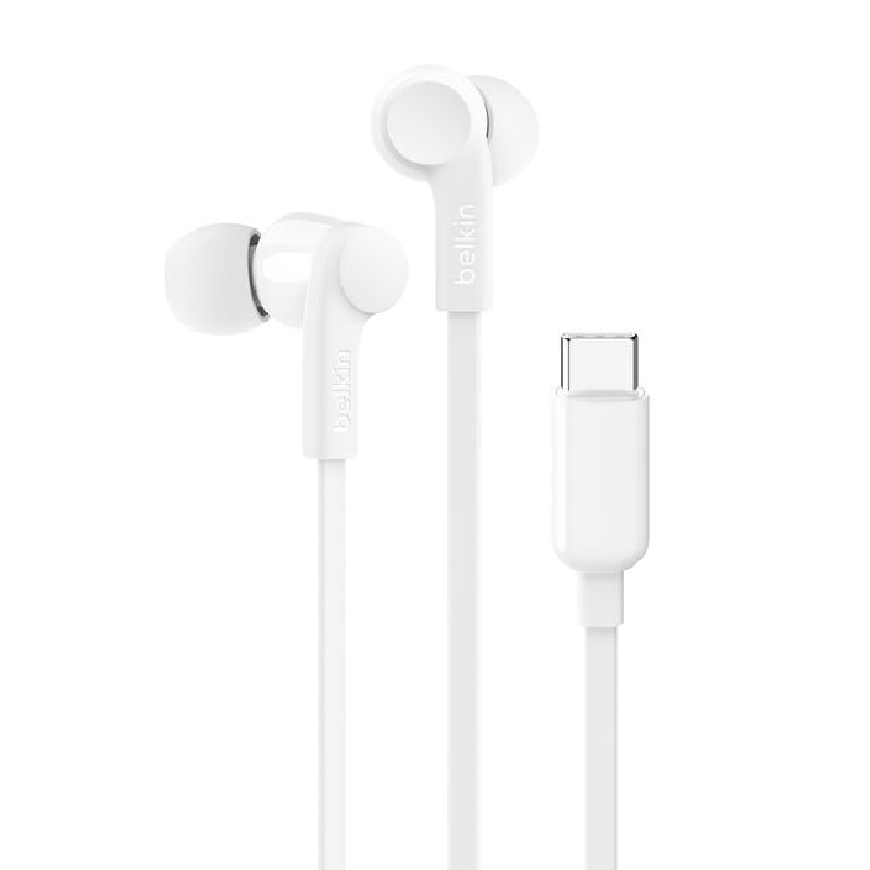 SoundForm Wired Earbuds with USB-C Connector deliver high-quality, immersive Belkin Signature sound, supreme comfort and fit, and are exceptionally durable. Packed with features, including water resistance and noise isolation, these compact earbuds offer superior audio without distraction. Plug in, no pairing required. The multi-control switch makes it easy to play, pause, skip tracks, change volume or answer a phone call.