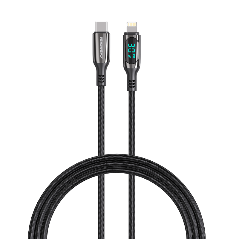 RockRose Cable 30W Zinc Alloy Fast Charging with Digital Power Display USB-C to Lightning